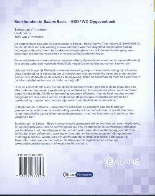 Dit opgavenboek sluit aan bij Boekhouden in Balans – Basis hbo/wo Theorieboek (9789462870840),