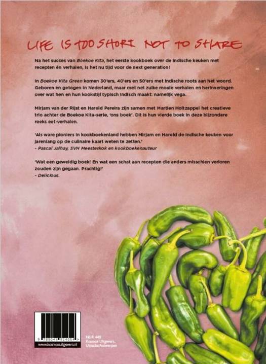 Boekoe Kita Green is de vega opvolger van Boekoe Kita, het succesvolle, en eerste moderne kookboek over de Indische keuken met recepten en verhalen. Nu is het tijd voor de next generation! In Boekoe Kita Green komen 30’ers, 40’ers en 50’ers met Indische roots aan het woord. Geboren en getogen in Nederland, maar met net zulke mooie verhalen en herinneringen over wat hen en hun kookstijl typisch Indisch anno 2022 maakt: namelijk vegetarisch.