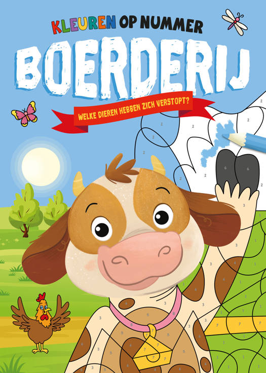 In de patronen in dit boek zitten allerlei boerderijdieren verstopt… Kleur de patronen in volgens de codes die eronder staan en ontdek om welke dieren het gaat! Als een vakje geen nummer heeft, laat je het wit.