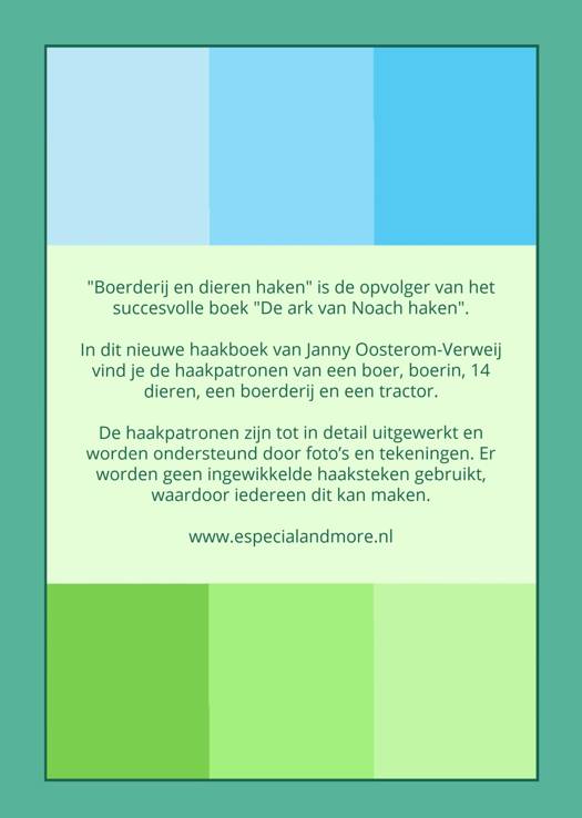 In dit nieuwe haakboek van Janny Oosterom-Verweij vind je de haakpatronen van een boer, boerin, 14 dieren, een boerderij en een tractor.