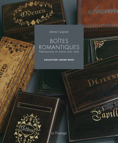 Boîtes romantiques présente une sélection des plus belles pièces de la collection de Janine Nessi, qui, au fil des ans, à réuni à Lugano (Suisse) un ensemble -unique au monde de boîtes à inscriptions du xixe siècle.