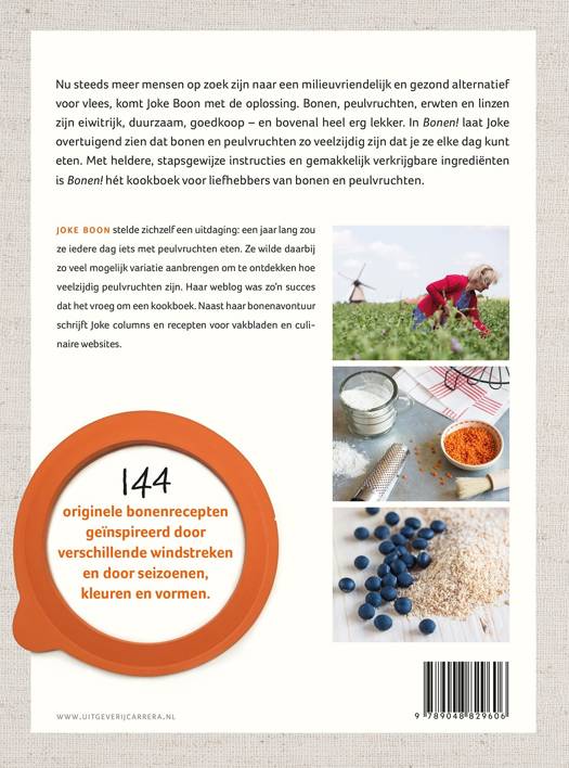 Nu steeds meer mensen op zoek zijn naar een milieuvriendelijk en gezond alternatief voor vlees, komt Joke Boon met de oplossing. Bonen, peulvruchten, erwten en linzen zijn eiwitrijk, duurzaam, goedkoop, en bovenal heel erg lekker. In Bonen! laat Joke overtuigend zien dat bonen en peulvruchten zo veelzijdig zijn dat je ze elke dag kunt eten. Met heldere, stapsgewijze instructies en gemakkelijk verkrijgbare ingrediënten is Bonen!