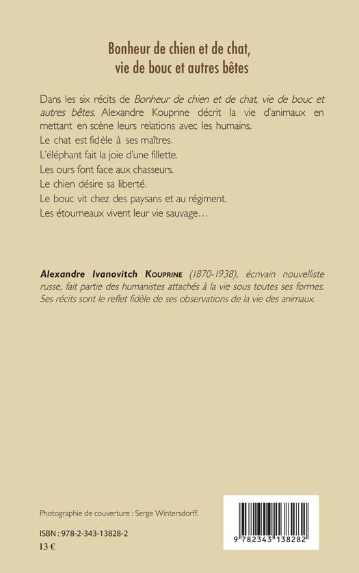 Dans les six récits de ce livre, Alexandre Kouprine décrit la vie d'animaux en mettant en scène leurs relations avec les humains. Le chat est fidèle à ses maîtres. L'éléphant fait la joie d'une fillette. Les ours font face aux chasseurs. Le chien désire sa liberté. Le bouc vit chez des paysans et au régiment. Les étournaux vivent leur vie sauvage ...