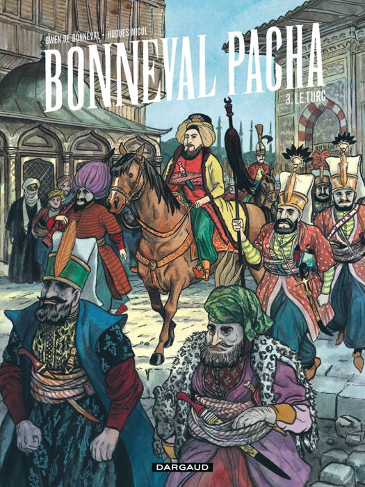 Le Turc est le 3e tome de Bonneval Pacha, une biographie haute en couleur signée Gwen de Bonneval, un lointain neveu du héros, et Hugues Micol. Troisième épisode de Bonneval Pacha, résumé de la série. Du comte de Bonneval, Voltaire disait : « On lui passera tout, parce qu'il était un homme aimable », soulignant ainsi les sentiments ambivalents suscités par cet incroyable personnage, tout autant aimé et admiré que honni ou jalousé par ses contemporains. Un homme du XVIIIe siècle, plein de panache et de fougue, qui vécut passionnément et connut un destin chaotique, épique et tragique d'officier français sous Louis XIV, de général d'infanterie pour l'empire d'Autriche, puis de pacha ottoman à Constantinople. Cela valait bien une biographie ! 3e et dernier volet de Bonneval Pacha ; un énorme travail de recherche documentaire et une mise en images somptueuse pour une bande dessinée biographique qui répare les oublis de l'Histoire.
