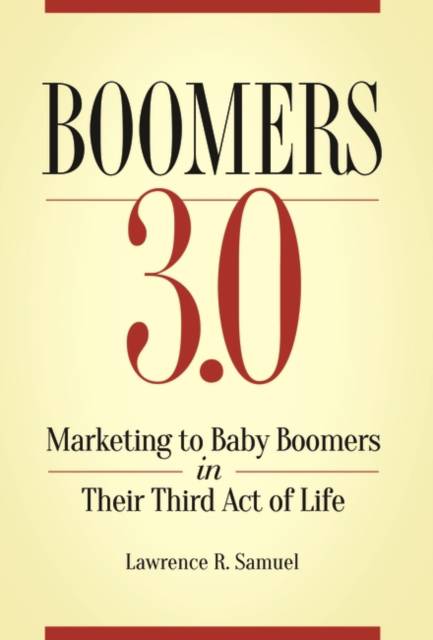The graying of America is undeniable, with an estimated 10,000 boomers turning 65 every day. But to dismiss the baby boomer generation as a group no longer worth marketing to would be foolish. According to the Census Bureau, in 2029--the year when the last boomer will have turned 65--there will still be more than 61 million boomers, roughly 17 percent of the projected population of the United States. Boomers will still be the wealthiest generation in the United States until at least 2030, according to the Deloitte Center for Financial Services, with their share of net household wealth to peak at 50.2 percent by 2020. Boomers 3.0: Marketing to Baby Boomers in Their Third Act of Life describes how to market to baby boomers from a cultural perspective, specifically addressing the demographic group of baby boomers in their later adulthood--a period that will continue for the next two to three decades. The author uses the term "3.0" to indicate the baby boomers' third phase of life and explains how this third act of life will differ from earlier periods; accordingly, organizations should take a different approach to marketing to them than in the past. This book offers a way to contextualize business objectives within a culturally based, forward-thinking framework that fully leverages the opportunities presented by what is perhaps the biggest and most affluent customer base in history. Readers will be able to use the strategies described to map territories to stake and mine in targeting boomers, create meaningful relationships with individuals in this group, and communicate effectively with boomers to offer them products and services.