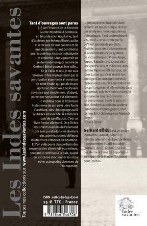 Tant d’ouvrages sont parus […] sur l’histoire de la Seconde Guerre mondiale à Bordeaux, en Gironde et en Aquitaine ; tant d’archives ont été mobilisées au fur et à mesure de leur collecte et de leur classement ; tant de témoins ont raconté leur histoire individuelle et collective ! Aussi pourrait-on se demander en quoi ce livre de Gerhard Bökel pourrait être utile…