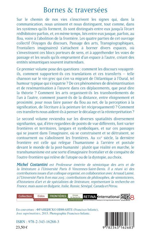 Les quatre parties de cet ouvrage collectif s'attachent à appréhender les voies de passage et les seuils que les signes empruntent d'un espace à l'autre, créant des entités sémantiques souvent inattendues. Ce premier volume part du constat suivant : nombreuses sont les limites en tous genres qui parsèment le monde mental comme le monde physique, mais tout aussi nombreux sont, à chaque fois, les agencements et dispositifs visant à repousser la frontière, à la transgresser, pratiquement ou symboliquement. Les questions s'orientent alors vers ces arts qui émigrent conjointement ou en dissociation, dans la successivité des temps.