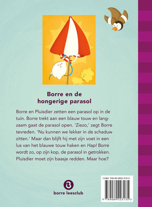 Vanaf 3 jaar. Het is snikheet. De zon brandt op de bolletje van Borre en Pluisdier. Tijd om de parasol op te zetten! Maar dat is zo eenvoudig nog niet. Zeker als die parasol honger heeft en wel een lekker hapje Borre lust!