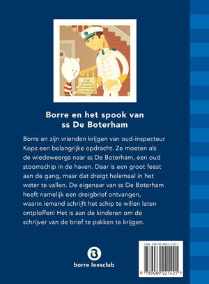 Vanaf 9 jaar. In de haven ligt een oud stoomschip dat ss De Boterham heet. Op het stoomschip wordt een groot feest gehouden. Maar er is blijkbaar iemand die niet van feestjes houdt. De eigenaar van ss De Boterham heeft namelijk een dreigbrief ontvangen. Daarin staat dat het schip zal ontploffen! Lukt het Borre en zijn vrienden van De Kerkhof Kids om die ramp te voorkomen? Lees 'Borre en het spook van ss De Boterham' en je weet het!