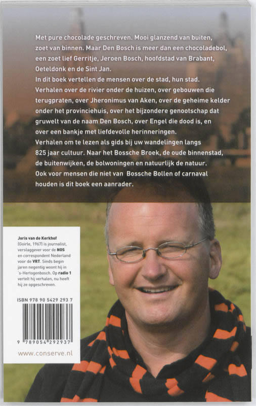 Met pure chocolade geschreven. Mooi glanzend van buiten, zoet van binnen. Maar Den Bosch is meer dan een chocoladebol, meer dan een zoet lief Gerritje, meer dan Jeroen Bosch, meer dan de hoofdstad van Brabant, meer dan Oeteldonk en meer dan alleen de stad van de Sint Jan. Het is Brabantse gezelligheid, boordevol winkels en cultuur. Met een historische binnenstad, maar ook heel veel buitenwijk. In dit boek verhalen de mensen over de stad, hun stad. Over de rivier onder de huizen, over gebouwen die terugpraten, over Hiëronymus van Aken, over de geheime kelder onder het provinciehuis, over het bijzondere genootschap dat gruwelt van de naam Den Bosch, over de dode engel en met een bijzondere schets van de ontstaansgeschiedenis. Verhalen om te lezen als gids bij uw wandelingen. Naar het Bossche Broek, de oude binnenstad, de buitenwijken, de bolwoningen en natuurlijk de natuur. Ook voor mensen die niet van Bossche Bollen of van carnaval houden is dit boek een aanrader. Met al die verhalen en al die wandelingen ga je vanzelf van de stad 's-Hertogenbosch houden.