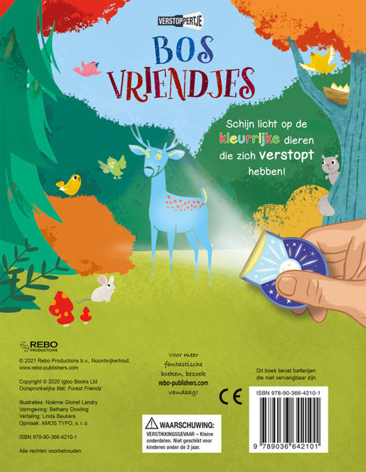 Kleine Beer speelt verstoppertje met zijn bosvriendjes. Waar zijn ze nou heen? Help Kleine Beer met je magische zoeklamp in dit interactieve boek met een leuk verhaal. Kan jij de verstopte dieren vinden? Zoek met de losse zaklamp mét lichtknop naar de dieren die zich verstopt hebben in het boek. Door licht op de vrolijke illustraties te schijnen, komen de dieren tevoorschijn. Kijk maar goed!
