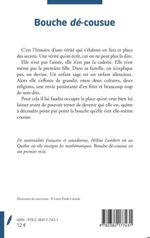 C'est l'histoire d'une vérité qui s'élabore en lieu et place des secrets. Une vérité qu'on écrit, car on ne peut plus la dire. Elle n'est pas l'ainée, elle n'est pas la cadette. Elle n'est même pas la première fille. Dans sa famille, on n'explique pas, on devine. Un enfant sage est un enfant silencieux. Alors elle s'efforce de grandir, entre deux cultures, deux religions, une envie persistante d'en finir et beaucoup trop de non-dits. Pour cela il lui faudra occuper la place qu'on veut bien lui laisser avant de pouvoir tenter de devenir qui elle est, quitte à découdre point par point la bouche qu'elle s'est elle-même cousue.