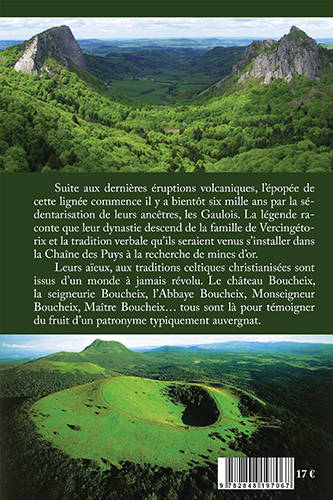 Suite aux dernières éruptions volcaniques, l’épopée de cette lignée commence il y a bientôt six mille ans par la sédentarisation de leurs ancêtres, les Gaulois. La légende raconte que leur dynastie descend de la famille de Vercingétorix et la tradition verbale qu’ils seraient venus s’installer dans la Chaîne des Puys à la recherche de mines d’or. Leurs aïeux, aux traditions celtiques christianisées sont issus d’un monde à jamais révolu. Le château Boucheix, la seigneurie Boucheix, l’Abbaye Boucheix, Monseigneur Boucheix, Maître Boucheix… tous sont là pour témoigner du fruit d’un patronyme typiquement auvergnat.