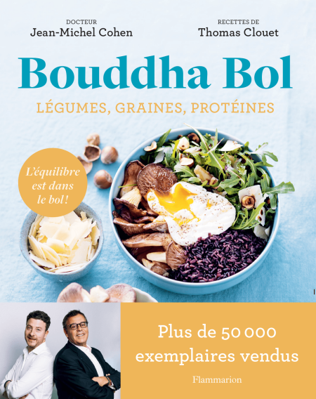 Lors d’un séjour aux États-Unis, Jean-Michel Cohen découvre le buddha bowl et est séduit par ce plat tout-en-un réunissant légumes-céréales-légumineuses et oléagineux. Un plat facile à réaliser, créatif à souhait, consistant et bon pour la santé. On met ce qu’on veut dans un bo(w)l : des protéines (végétales, animales), des féculents, du fromage, de la salade, des fruits… du cru, du cuit… du salé, du sucré, respectez les portions et faites-vous plaisir ! Jean-Michel Cohen a confié à Thomas Clouet la réalisation de 100 recettes faciles à préparer au quotidien, toutes adoubées, proportionnées et conseillées donc par le spécialiste de la nutrition. Du petit déjeuner au dessert, que vous soyez bec sucré ou bec salé, végétarien, flexitarien ou amateur de viande, allez-y les yeux fermés et les papilles grandes ouvertes !