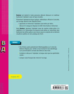 Boukvar est destiné à toute personne désirant découvrir et maîtriser facilement l’alphabet russe de façon durable.