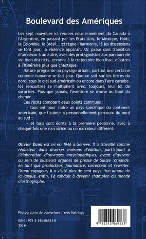 Les sept nouvelles ici réunies nous emmènent du Canada à l'Argentine, en passant par les Etats-Unis, le Mexique, Haïti, la Colombie, le Brésil On passe sans transition d'un décor à un autre, avec des protagonistes aux parcours de vie distincts. Ces récits comptent deux points communs : - tous ont pour cadre un pays spécifique du continent américain, que l'auteur a personnellement parcouru ; - et tous sont écrits à la première personne, avec à chaque fois une narratrice ou un narrateur différent.