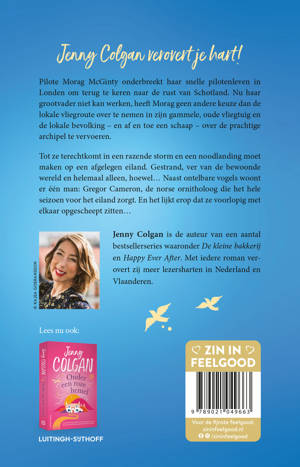 In Boven de wolken van Jenny Colgan keert pilote Morag McGinty terug naar Schotland vanuit haar drukke leven in Londen. Nu haar grootvader niet meer kan werken heeft Morag geen andere keuze dan de lokale vliegroute over te nemen in zijn gammele, oude vliegtuig. Tot ze terechtkomt in een razende storm en een noodlanding moet maken op een afgelegen eiland. Gestrand, ver van de bewoonde wereld en helemaal alleen, hoewel… Naast ontelbare vogels woont er één man: Gregor Cameron, een norse ornitholoog. En het lijkt erop dat ze voorlopig met elkaar opgescheept zitten…