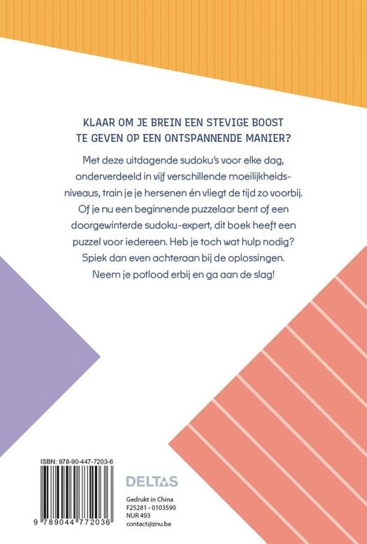 Klaar om je brein een stevige boost te geven op een ontspannende manier? Met deze uitdagende sudoku’s voor elke dag train je je hersenen én vliegt de tijd zo voorbij. Of je nu een beginnende puzzelaar bent of een doorgewinterde sudoku-expert, dit boek heeft een puzzel voor iedereen.