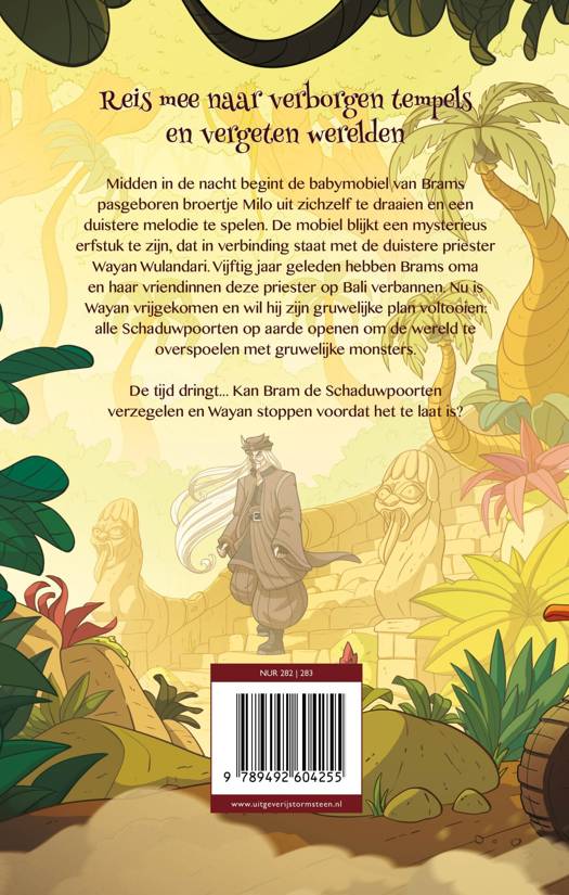 Midden in de nacht begint de babymobiel van Brams pasgeboren broertje Milo uit zichzelf te draaien en een duistere melodie te spelen. De mobiel blijkt een mysterieus erfstuk te zijn, dat in verbinding staat met de duistere priester Wayan Wulandari. Vijftig jaar geleden hebben Brams oma en haar vriendinnen deze priester op Bali verbannen. Nu is Wayan vrijgekomen en wil hij zijn gruwelijke plan voltooien: alle Schaduwpoorten op aarde openen om de wereld te overspoelen met angstaanjagende monsters.