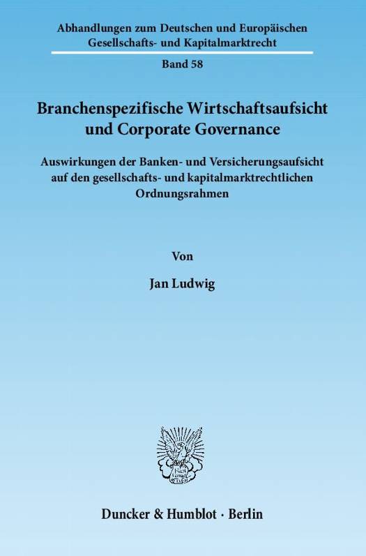 Aufgrund der vielen, zunächst unabhängig nebeneinander stehenden Regelungsinstrumente und -ebenen, drängen sich Überschneidungen, Widersprüche, Konkurrenzfragen und nicht zuletzt Probleme der Überregulierung nachgerade auf. Jan Ludwig beantwortet die aufgeworfenen Fragen, systematisiert die verschiedenen Regelungsinstrumente, ordnet die Wirtschaftsaufsicht in das Gefüge der Corporate Governance ein und stellt die Funktionsweisen von Selbstkontrolle und Staatsaufsicht gegenüber.