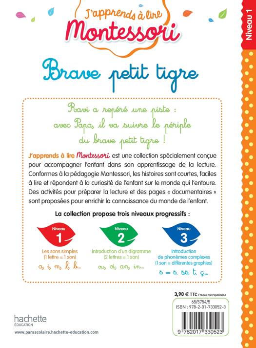 J’apprends à lire MONTESSORI est une collection spécialement conçue pour accompagner l’enfant dans son apprentissage de la lecture. Conformément à la pédagogie Montessori, les histoires sont courtes, faciles à lire et répondent à la curiosité de l’enfant sur le monde qui l’entoure. Des activités pour préparer la lecture et des pages « documentaires » sont proposées pour enrichir la connaissance du monde de l’enfant.