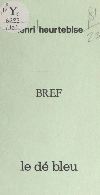 « Histoire. Tout à loisir, la vie sur la terre des terres, pleine pluie plein soleil pleins bras, eau de soleil, enfance. » Dans la collection "Le dé bleu", Henri Heurtebise, originaire du Lot-et-Garonne, fondateur de la revue "Multiples", nous livre ici 13 de ses poèmes, parus en 1976.