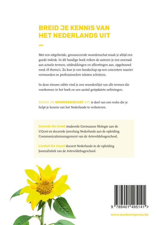 Met een uitgebreide, genuanceerde woordenschat maak je altijd een goede indruk. In dit handige boek reiken de auteurs je een arsenaal aan actuele termen, uitdrukkingen en afkortingen aan, opgebouwd rond 18 thema's. Zo kun je een boodschap op een concretere manier verwoorden en professionelere teksten schrijven.