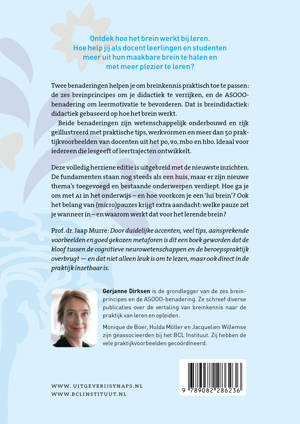 Ontdek hoe het brein werkt bij leren en hoe je als docent leren leuker én effectiever maakt. Breindidactiek is al jaren een klassieker op de literatuurlijsten van pedagogische en didactische opleidingen in Nederland en België — nu volledig vernieuwd. — Twee benaderingen helpen je breinkennis praktisch toe te passen: de zes breinprincipes om je didactiek te verrijken en de ASOOO-benadering om leermotivatie te bevorderen. Dat is breindidactiek: didactiek gebaseerd op hoe het brein werkt. Beide benaderingen zijn wetenschappelijk onderbouwd en rijk geïllustreerd met praktische tips, werkvormen en meer dan 50 praktijkvoorbeelden van docenten uit het po, vo, mbo en hbo. Ideaal voor iedereen die lesgeeft, traint of leertrajecten ontwikkelt. — Deze volledig herziene editie is uitgebreid met de nieuwste inzichten. De fundamenten staan nog steeds als een huis, maar er zijn ook nieuwe thema’s toegevoegd en bestaande onderwerpen verdiept. Hoe ga je bijvoorbeeld om met AI in het onderwijs — en hoe voorkom je dat dit leidt tot een ‘lui brein’? Ook het belang van (micro)pauzes krijgt extra aandacht, met praktische handvatten over welke pauze je wanneer inzet — en waarom dat werkt voor het lerende brein. — Prof. dr. Jaap Murre: “Door duidelijke accenten, veel tips, aansprekende voorbeelden en goed gekozen metaforen is dit een boek geworden dat de kloof tussen de cognitieve neurowetenschappen en de beroepspraktijk overbrugt — en dat niet alleen leuk is om te lezen, maar ook direct in de praktijk inzetbaar is.” — Gerjanne Dirksen is de grondlegger van de zes breinprincipes en de ASOOO-benadering. Ze schreef diverse publicaties over de vertaling van breinkennis naar de praktijk van leren en opleiden.