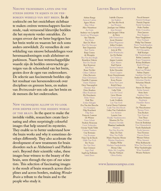 EN - New techniques allow us to look ever deeper into the hidden world of the brain. In the quest to make the invisible visible, researchers create fascinating and often surprisingly colourful images that help unravel its mysteries. They enable us to better understand how the brain works and why it sometimes develops differently. They also accelerate the development of new treatments for brain disorders such as Alzheimer's and Parkinson's. Beyond their scientific value, these images bear witness to the beauty of the brain, seen through the eyes of our scientists. This selection of fascinating images is the result of brain research across disciplines and across borders, making Wonder Brain a tribute to the brain and to the people who study it.