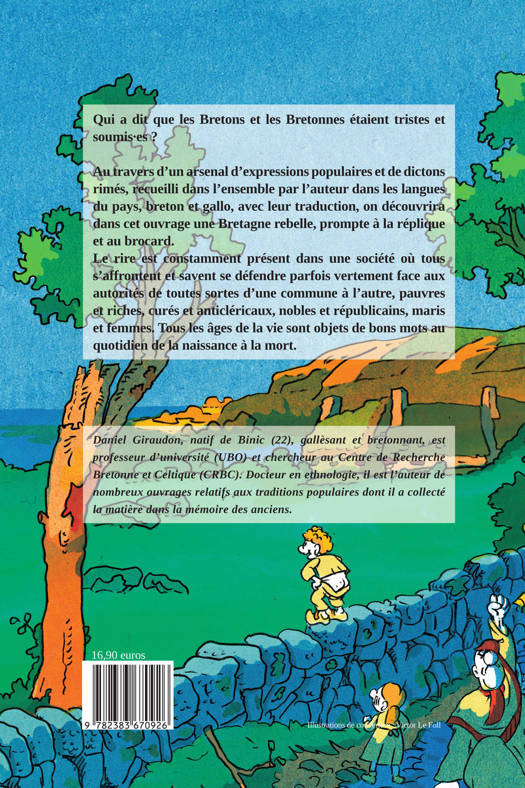 Qui a dit que les bretons et les bretonnes étaient tristes et soumis ? A travers de nombreuses expressions populaires, dans leur jus, recueillis pour la plupart par l'auteur, le tout dans leur langue (breton ou galo en général) avec la traduction adaptée, redécouvrez la sagesse populaire de la Bretagne. Une sagesse de rebelles, prompt à la raillerie, cherchant la rime et l'expression la plus originale et drôle. Tout est prétexte à se foutre de la tête du voisin, à parler des métiers, des communes, du manger et du boire, sans compter l'anticléricalisme et les prêtres. Tout y passe, de bon cÅur, les mariages, les riches, le travail et les péchés comme l'avarice et l'orgueil.