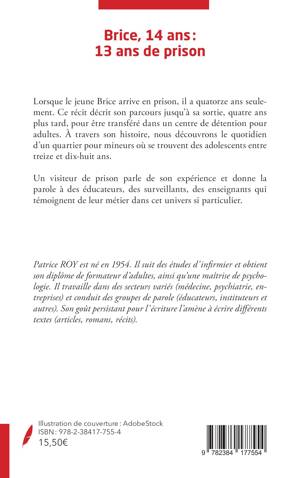 Lorsque le jeune Brice arrive en prison, il a quatorze ans seulement. Ce récit décrit son parcours jusqu'à sa sortie, quatre ans plus tard, pour être transféré dans un centre de détention pour adultes. À travers son histoire, nous découvrons le quotidien d'un quartier pour mineurs où se trouvent des adolescents entre treize et dix-huit ans. Un visiteur de prison parle de son expérience et donne la parole à des éducateurs, des surveillants, des enseignants qui témoignent de leur métier dans cet univers si particulier.