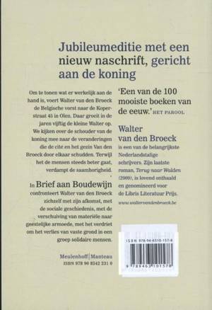 In Brief aan Boudewijn confronteert Walter van den Broeck zichzelf met zijn afkomst, met de sociale geschiedenis, met de verschuiving van materiële naar geestelijke armoede, met het verdriet om het verlies van vaste grond in een groep solidaire mensen.