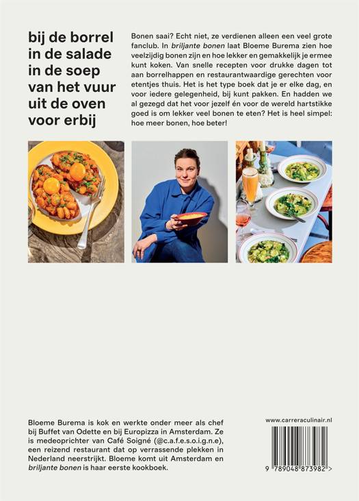 Bonen saai? Echt niet! Ze hebben alleen een grote fanclub nodig. In briljante bonen laat Bloeme Burema zien hoe veelzijdig bonen zijn en hoe lekker en gemakkelijk je ermee kunt koken. Van snelle recepten voor drukke dagen tot aan borrelhappen en restaurantwaardige gerechten voor fancy etentjes. Dit is het type boek dat je er iedere dag, voor elke gelegenheid bij kunt pakken. En hadden we al gezegd dat het voor jezelf én voor de wereld hartstikke goed is om lekker veel en vaak bonen te eten? Inderdaad, hoe meer bonen, hoe beter!