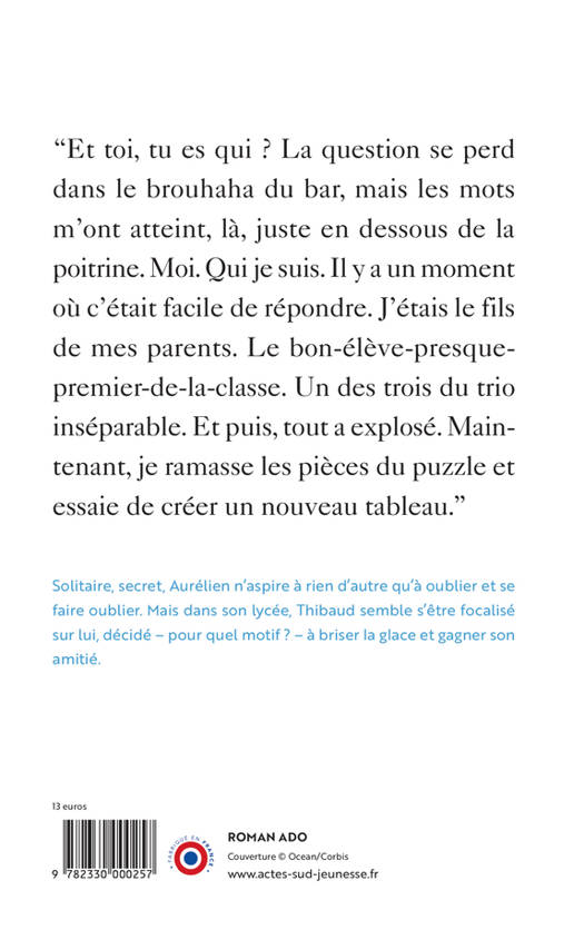 Aurélien est nouveau dans son lycée. Il a déménagé. Ce n'est pas la première fois qu'il déménage. Pas facile de se faire des amis dans ces conditions. Mais justement, des amis, Aurélien semble ne pas en vouloir. Il est du genre solitaire ; parfois il voudrait juste pouvoir se fondre dans le décor pour qu'on lui fiche la paix. Pourtant, un garçon de sa classe, Thibaud, semble s'intéresser particulièrement à lui ; il parvient même à convaincre Aurélien de participer à une soirée slam. Dans la pulsation des mots, dans la chaleur de cette amitié naissante, Aurélien arrive enfin à faire craquer la glace qui l'enserre et commence à se libérer du poids du secret, celui du deuil.