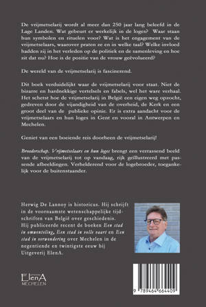 De vrijmetselarij wordt al meer dan 250 jaar lang beleefd in de Lage Landen. Wat gebeurt er werkelijk in de loges? Waar staan hun symbolen en rituelen voor? Wat is het engagement van de vrijmetselaars, waarover praten ze en in welke taal? Welke invloed hadden zij in het verleden op de politiek en de samenleving en hoe zit dat nu? Hoe is de positie van de vrouw geëvolueerd? De wereld van de vrijmetselarij is fascinerend. Dit boek verduidelijkt waar de vrijmetselarij voor staat. Niet de bizarre en hardnekkige vertelsels en fabels, wel het ware verhaal. Het schetst hoe de vrijmetselarij in België een eigen weg opzocht, gedreven door de vijandigheid van de overheid, de Kerk en een groot deel van de publieke opinie. Er is extra aandacht voor de vrijmetselaars en hun loges in Gent en vooral in Antwerpen en Mechelen. Geniet van een boeiende reis doorheen de vrijmetselarij! Broederschap. Vrijmetselaars en hun loges brengt een verrassend beeld van de vrijmetselarij tot op vandaag, rijk geïllustreerd met passende afbeeldingen. Verhelderend voor de logebroeder, toegankelijk voor de buitenstaander.
