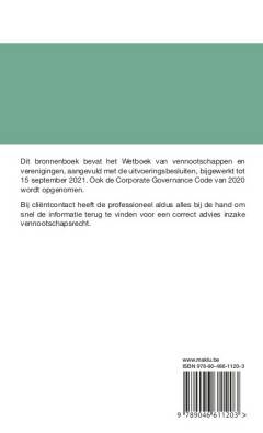 Dit bronnenboek bevat het Wetboek van vennootschappen en verenigingen, aangevuld met de uitvoeringsbesluiten, bijgewerkt tot 15 september 2021. Ook de Corporate Governance Code van 2020 wordt opgenomen.Bij cliëntcontact heeft de professioneel aldus alles bij de hand om snel de informatie terug te vinden voor een correct advies inzake vennootschapsrecht.