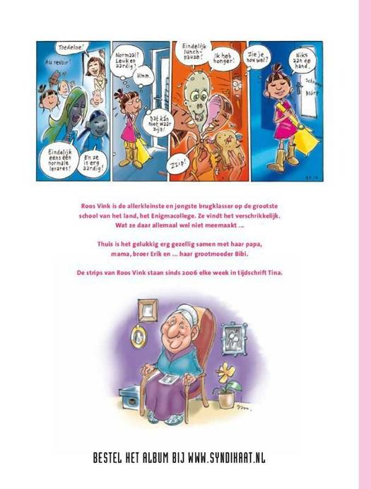 Roos Vink is de allerkleinste en jongste brugklasser op de grootste school van het land, het Enigmacollege. Ze vindt het verschrikkelijk. Wat ze daar allemaal wel niet meemaakt ... Thuis is het gelukkig erg gezellig samen met haar papa, mama, broer Erik en ... haar grootmoeder Bibi. De strips van Roos Vink staan sinds 2006 elke week in tijdschrift Tina.