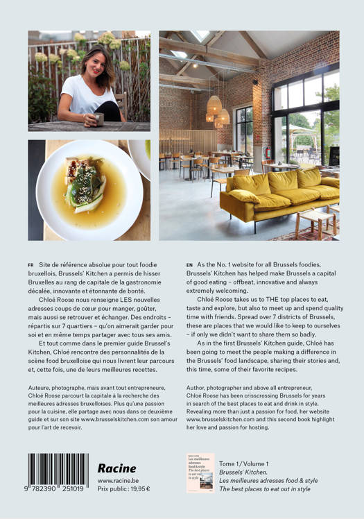Author, photographer and above all entrepreneur, Chloé Roose has been crisscrossing Brussels for years in search of the best places to eat and drink in style. Revealing more than just a passion for food, her website www.brusselskitchen.com and this second book highlights her love and passion for hosting.
