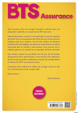 Un ouvrage 100% entraînement, qui saura préparer les étudiants aux épreuves de l’examen du BTS Assurance. C’est le guide qu’il faut pour organiser ses révisions et être prêt pour l’examen. L’auteur s’est appuyé́ sur son expérience d’enseignant spécialiste de ce domaine.