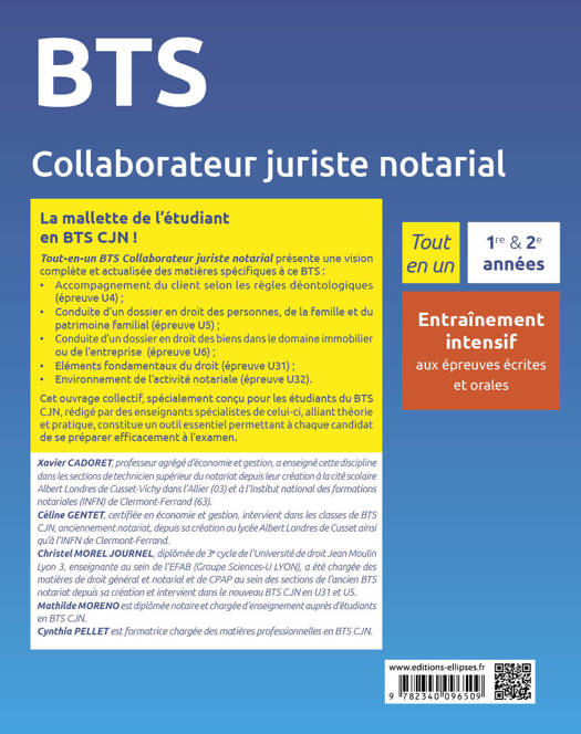 Tout-en-un BTS Collaborateur juriste notarial présente une vision complète et actualisée des matières spécifiques à ce BTS :