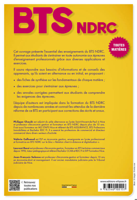 L’équipe d’auteurs est impliquée dans la formation du BTS NDRC depuis de nombreuses années et connait les attendus de la dernière réforme de ce BTS en participant aux corrections des écrits et oraux.