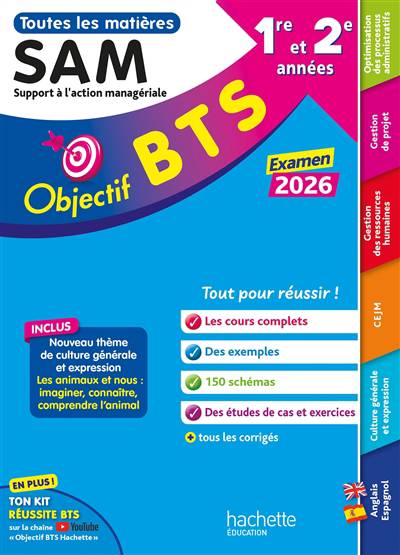 - Toutes les matières professionnelles du BTS SAM : Optimisation des processus administratifs, Gestion de projet, Collaboration à la gestion des ressources humaines