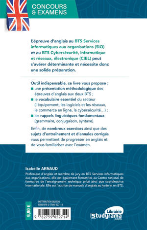 Outil indispensable, ce livre vous propose : • une présentation méthodologique des épreuves d’anglais aux deux BTS ; • le vocabulaire essentiel du secteur (l’équipement, les logiciels et les réseaux, le commerce en ligne, la cybersécurité…) ; • les rappels linguistiques fondamentaux (grammaire, conjugaison, syntaxe). Enfin, de nombreux exercices ainsi que des sujets d’entraînement et d’annales corrigés vous permettent de progresser en anglais et de vous familiariser avec l’examen.