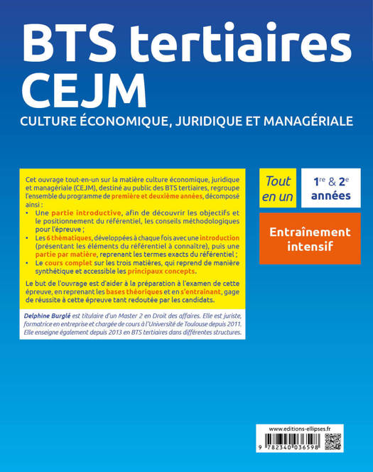 Cet ouvrage va vous accompagner dans votre préparation à l'épreuve CEJM des BTS tertiaires. Vous y trouverez :