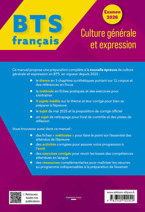 Ce manuel propose une préparation complète à la nouvelle épreuve de culture générale et expression en BTS en vigueur depuis 2025 :