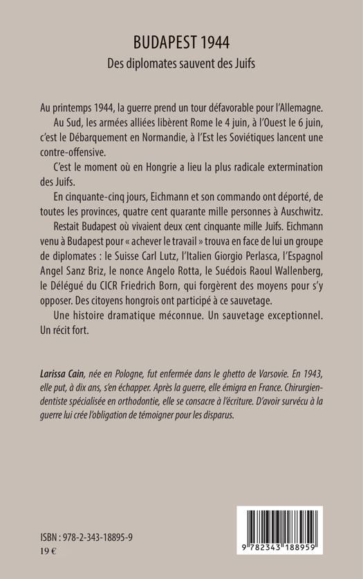 Au printemps 1944, alors que la guerre prend un tour défavorable pour l'Allemagne, la Hongrie met en place la plus radicale extermination des Juifs avec la déportation, de toutes les provinces, de quatre cent quarante mille personnes à Auschwitz. Restait Budapest où vivaient deux cent cinquante mille Juifs. Eichmann venu à Budapest pour « achever le travail » trouva en face de lui un groupe de diplomates : le Suisse Carl Lutz, l'Italien Giorgio Perlasca, l'Espagnol Angel Sanz Briz, le nonce Angelo Rotta, le Suédois Raoul Wallenberg et le Délégué du CICR Friedrich Born, qui, aidés de citoyens hongrois, forgèrent des moyens pour s'y opposer.
