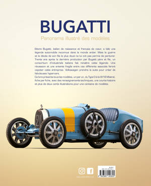 Ettore Bugatti, italien de naissance et français de coeur, a bâti une légende automobile reconnue dans le monde entier. Mais la guerre et la mort de son fils le plus doué ne lui ont pas permis de perdurer. Trente ans après la dernière production par Bugatti père et fils, un consortium d’industriels italiens fait renaître cette légende. Mais une récession et une entente fragile entre ces différents associés font capoter cette entreprise. Volkswagen prend la suite pour créer de fabuleux hypercars. Ce livre présente tous les modèles, un par un, du Type 0 à la Divo, fiche par fiche, avec des renseignements techniques, une courte histoire et plus de deux cents illustrations pour une centaine de modèles.