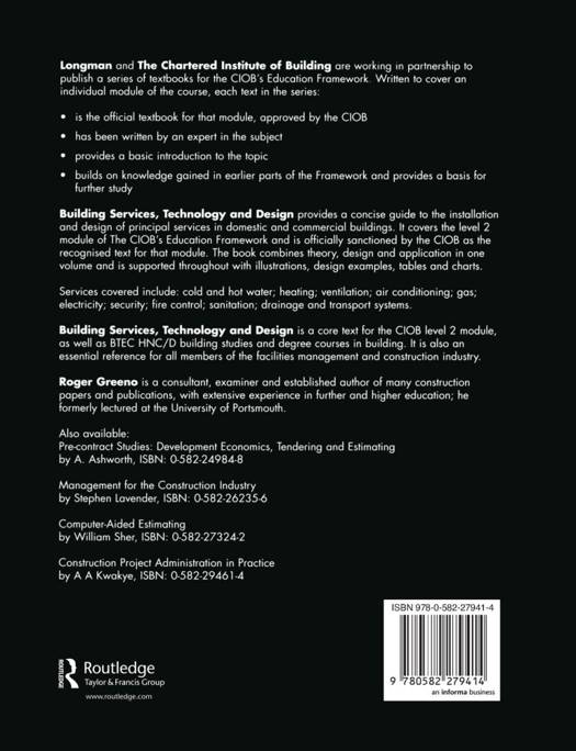 Provides a concise guide to the installation and design of principal services in domestic and commercial buildings. This book covers the level 2 module of The CIOB's Education Framework and is officially sanctioned by the CIOB as the recognised book for that module.