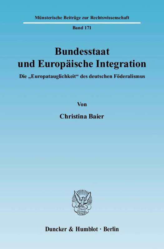 Die Autorin geht der Frage nach, ob der deutsche Föderalismus "europatauglich" ist. Zunächst werden die verfassungsrechtlichen Grundlagen für die Mitwirkung der Bundesländer an der europäischen Rechtssetzung, insbesondere Art. 23 GG, und an der Umsetzung in nationales Recht dargestellt. Sodann erfolgt eine eingehende Untersuchung der Schwierigkeiten bei der Ländermitwirkung in der Praxis. Hinsichtlich der Mitwirkung an der europäischen Rechtssetzung kommt die Autorin zu dem Ergebnis, dass die Mitwirkungskompetenzen der Länder die deutsche Position auf europäischer Ebene schwächen. Des Weiteren wird die These vertreten, dass die föderalen Strukturen die Umsetzung teilweise erheblich erschweren. Abgerundet wird die Untersuchung mit Vorschlägen, wie den aufgezeigten Problemen zu begegnen ist. Es wird eine deutliche Vereinfachung von Art. 23 GG sowie eine Richtlinienumsetzungskompetenz des Bundes mit Rückgriffsrecht der Länder favorisiert.