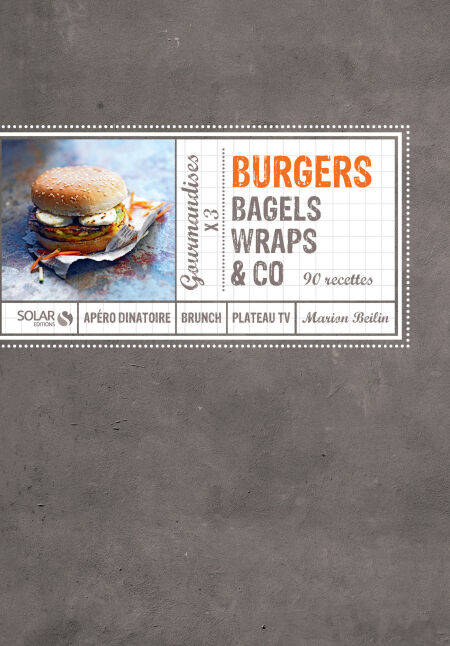 90 recettes de burgers, bagels et wraps pour des moments de convivialité, à partager en toutes occasions ! Des incontournables du week end comme le classique bacon cheeseburger, le bagel au samon fumé cream cheese ou le wrap thon-avocat aux recettes les plus originales comme le burger aux courgettes et flocons d'avoine et le wrap poulet, mangue, roquette. Cet ouvrage vous propose : • 90 recettes variées, salées et sucrées, dont 40 illustrées, simples, savoureuses et inventives, de burgers, bagels et wraps, pour les petites et les grandes faims... • Pour chaque recette, un conseil pour décliner les saveurs et proposer un accompagnement parfaitement assorti.